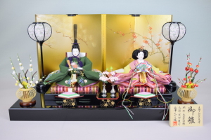 手描き加賀友禅雛人形【加賀三彩®】 (芥子:小サイズ) 幅52cm×奥行27cm×高さ36cm