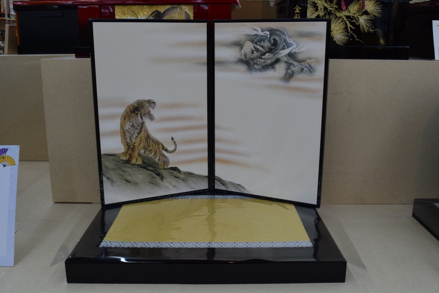 屏風には龍虎が描かれており、力強さを感じさせてくれます。
