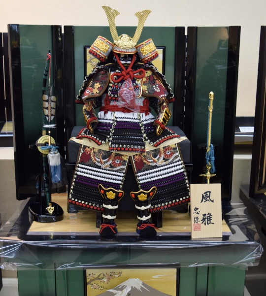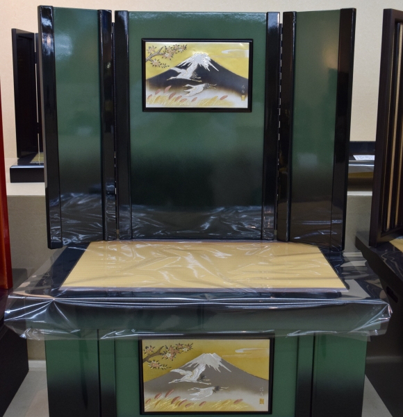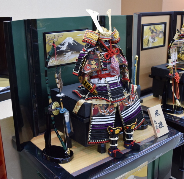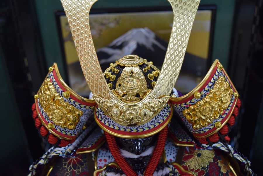 収納鎧飾りは台の中に鎧、屏風、弓太刀を収納することができ、一箱にまとめることができます。
