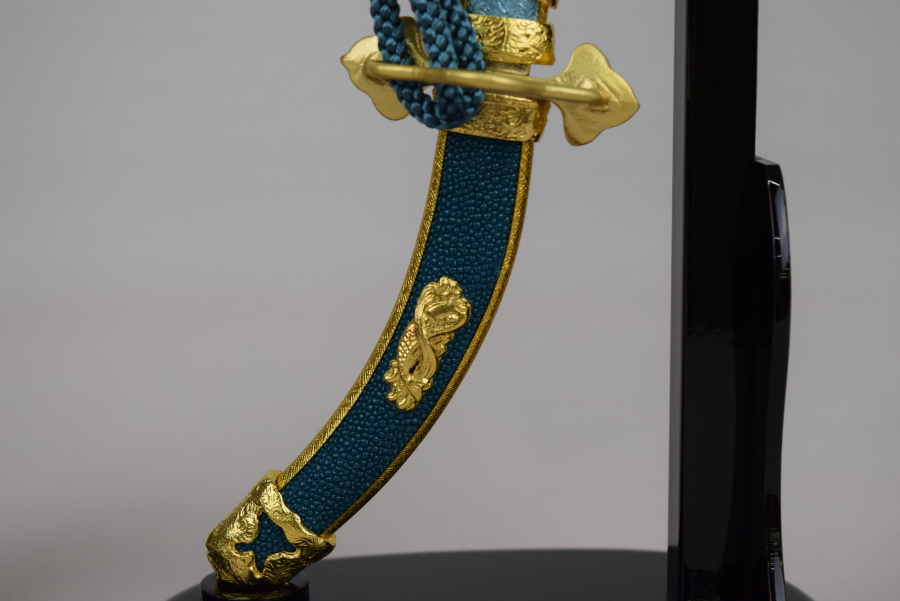 太刀の柄は鮫皮仕立てになっており、高級感を演出してくれます。