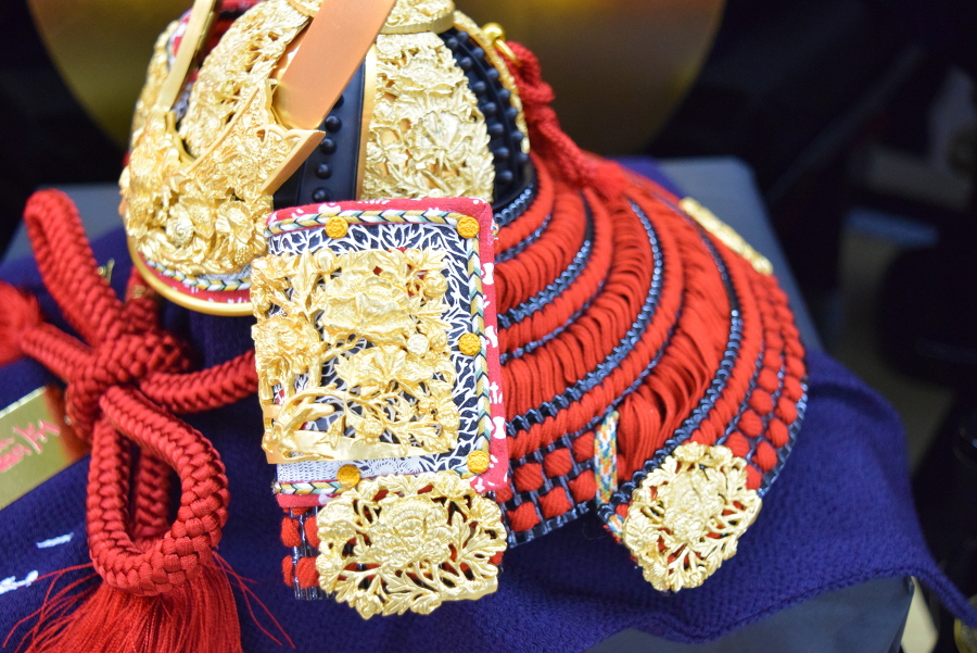 細部にまでこだわった細かい牡丹金物と長い鍬形が特徴的で、細部までこだわった技術は最高の出来となっております。