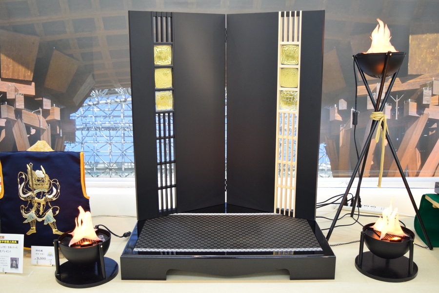 屏風には金沢幸町にある今井金箔さんの箔ガラスを嵌め込んだオリジナル商品となっております。