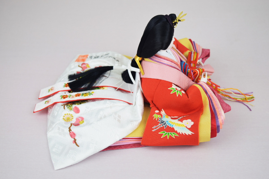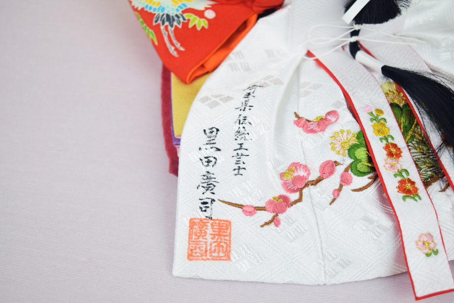 色彩豊かな加賀友禅は、手描きによる雛人形に合わせて描いております。