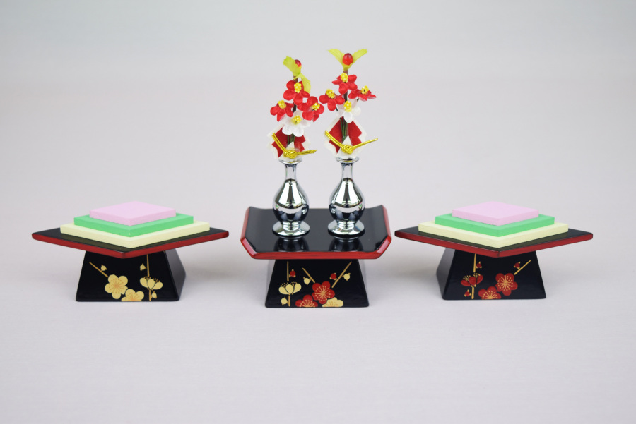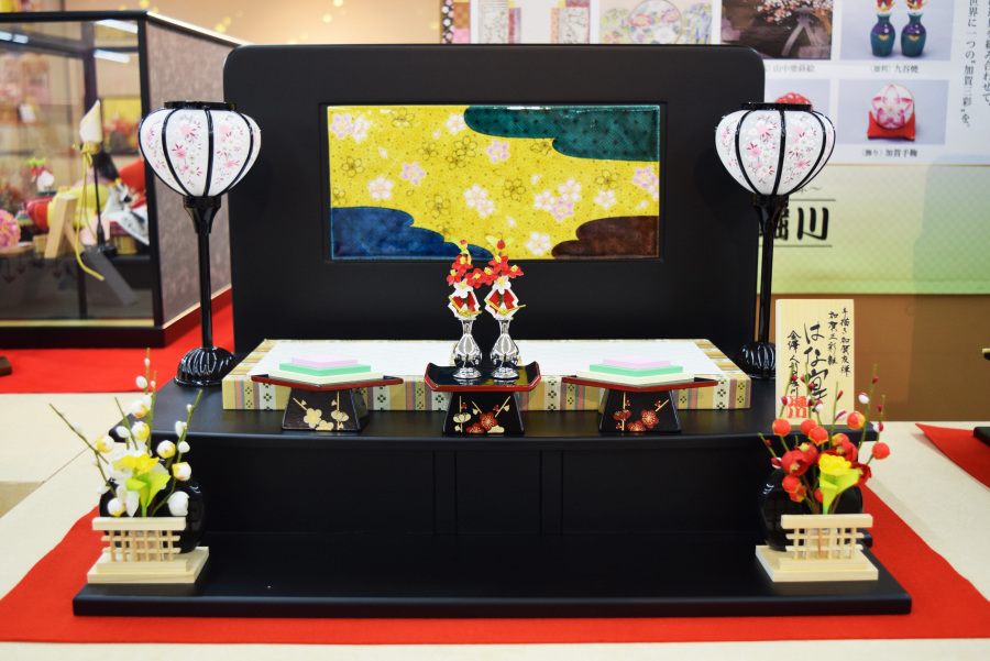 人形以外にも石川県の伝統工芸を使用したコンパクトな雛人形セットになっております。