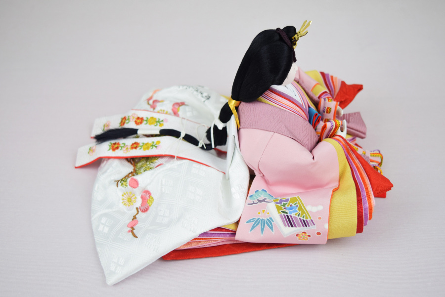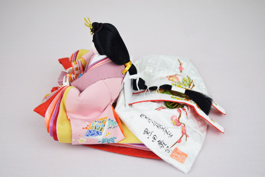 色彩豊かな加賀友禅は、手描きによる雛人形に合わせて描いております。