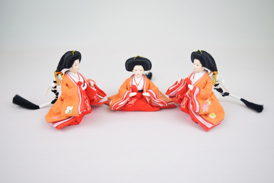 加賀三彩セットに三人官女をが加わったより華やかで愛らしい雛人形セットです。