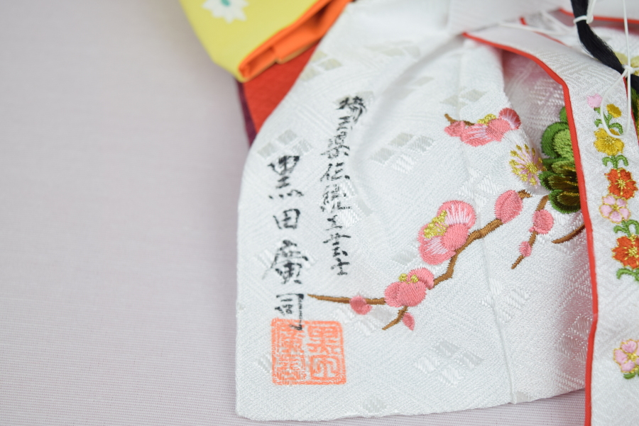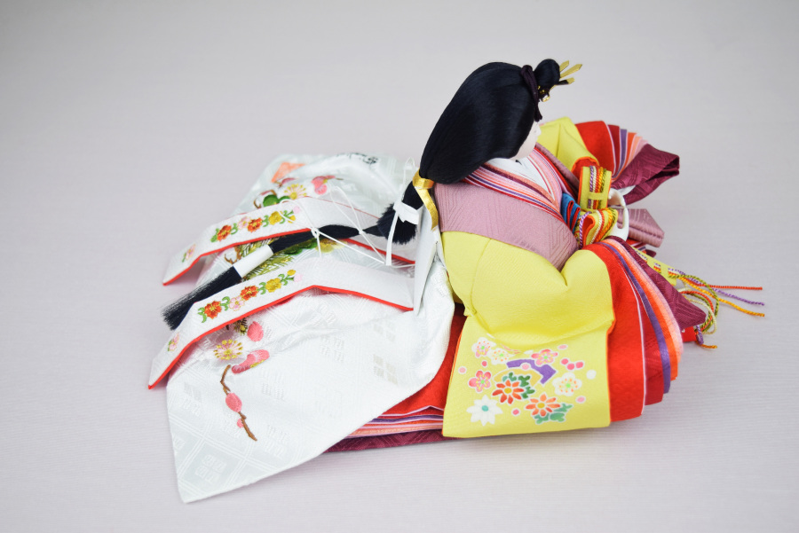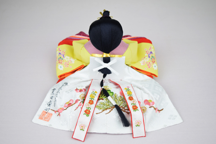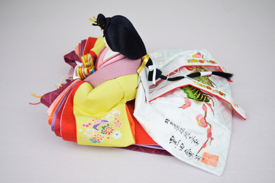 色彩豊かな加賀友禅は、手描きによる雛人形に合わせて描いております。