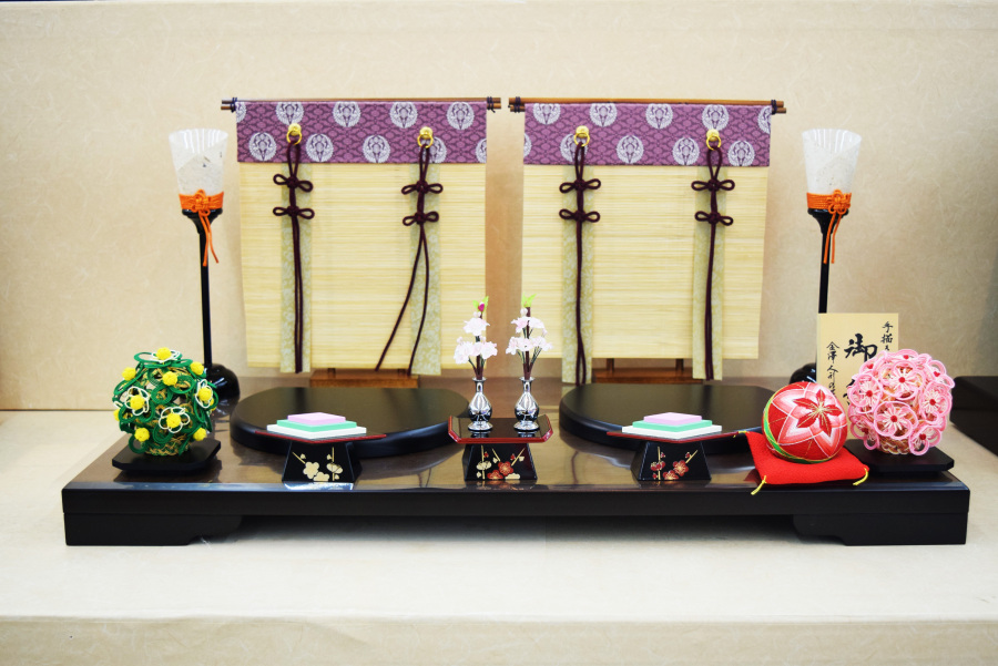 お花は加賀水引き、御道具には山中塗、加賀花手まりと