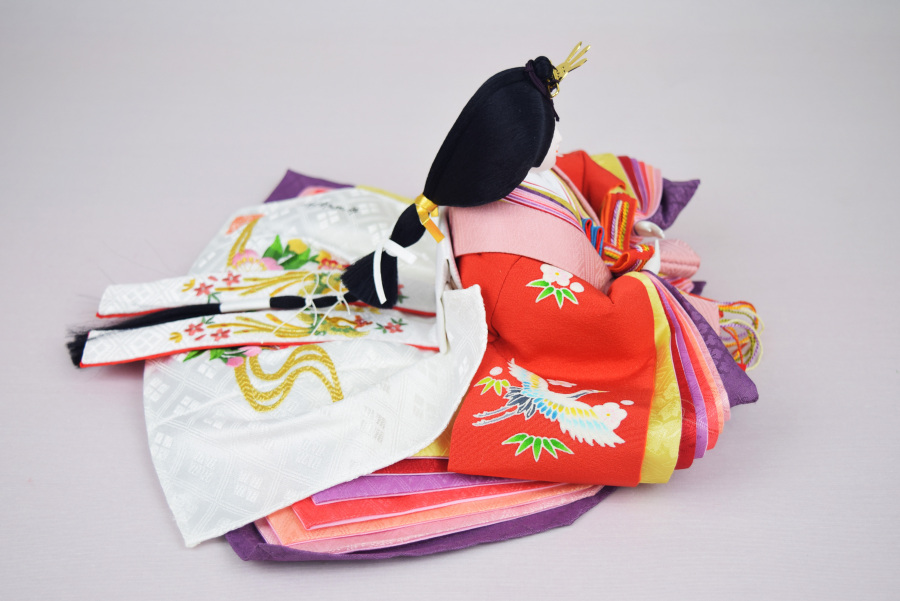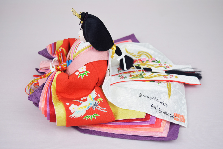 色彩豊かな加賀友禅は、手描きによる雛人形に合わせて描いております。