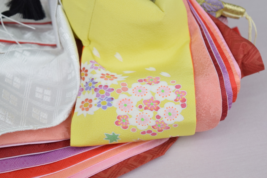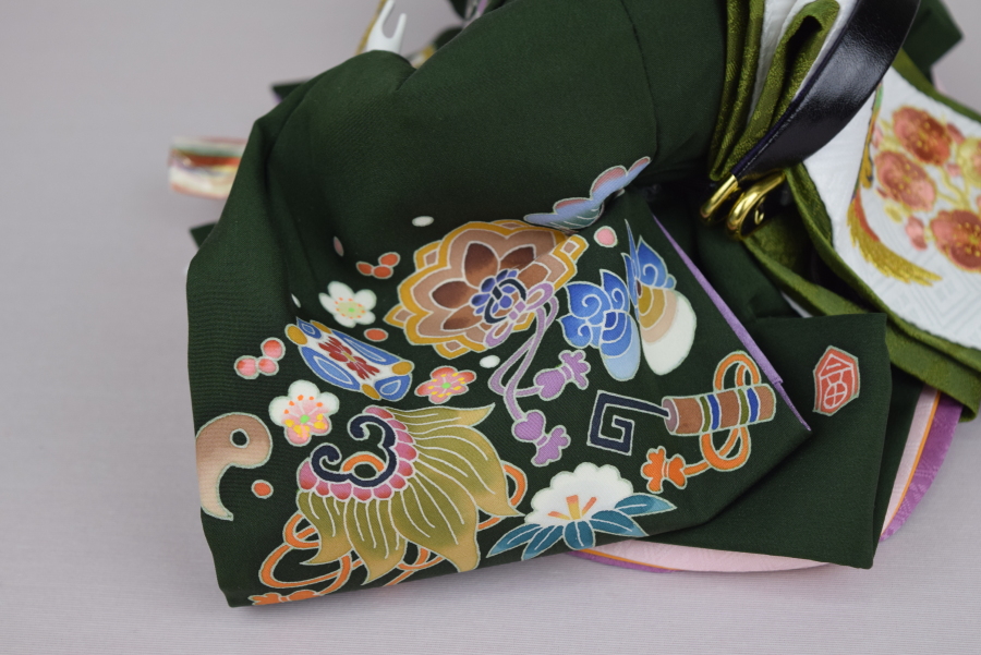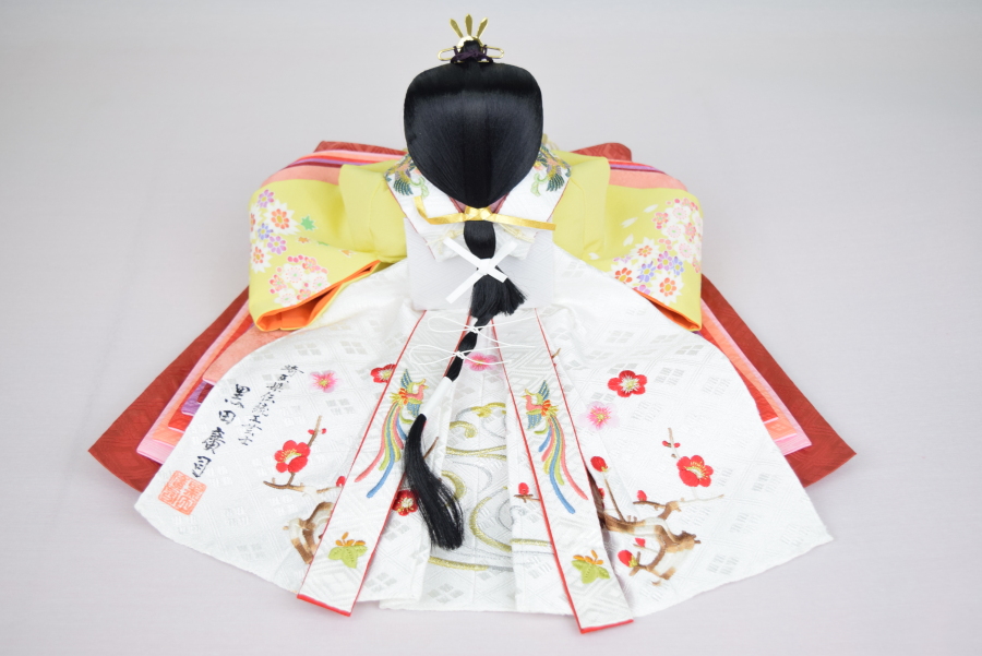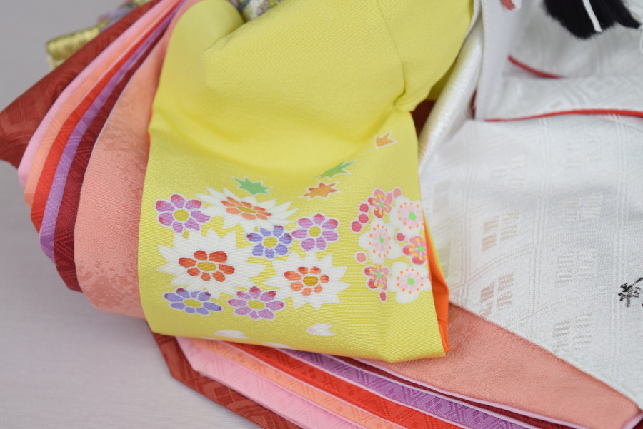 色彩豊かな加賀友禅は、手描きによる雛人形に合わせて描いております。