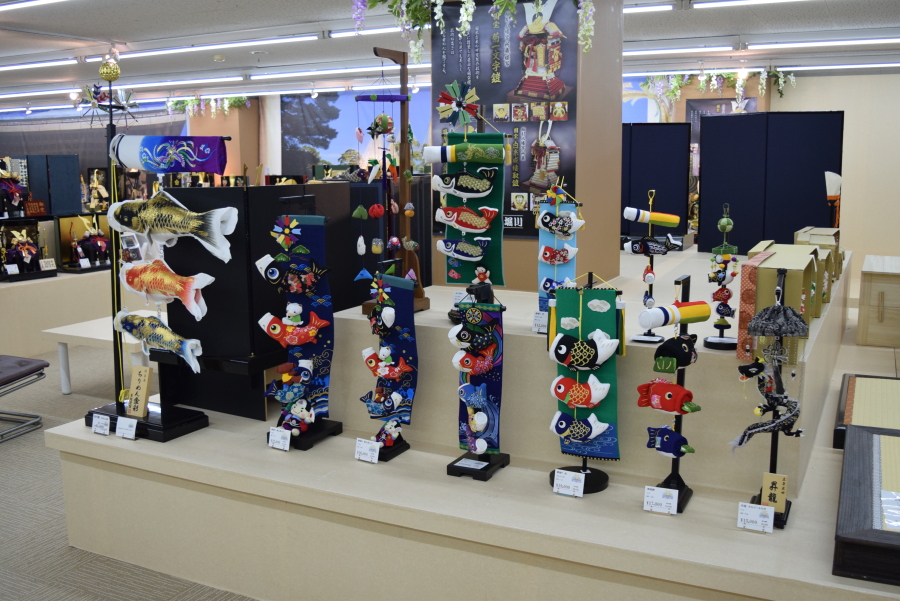 室内鯉のぼりや名前旗を各種取り揃えております。